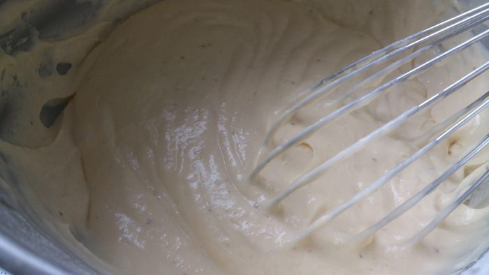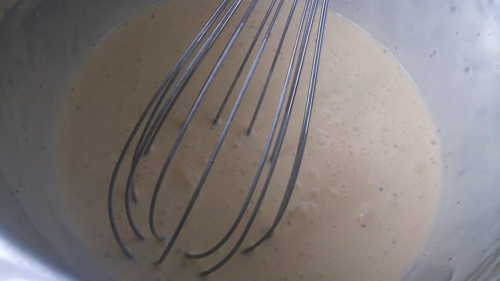 Смешать легонько обе смеси до получения жидкого теста.
