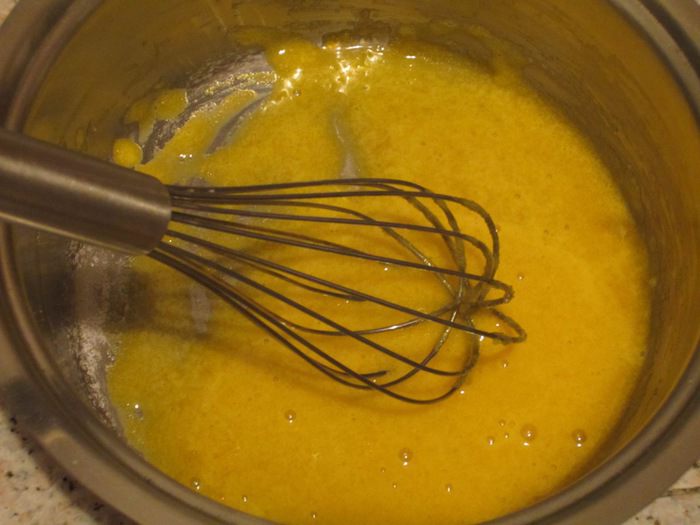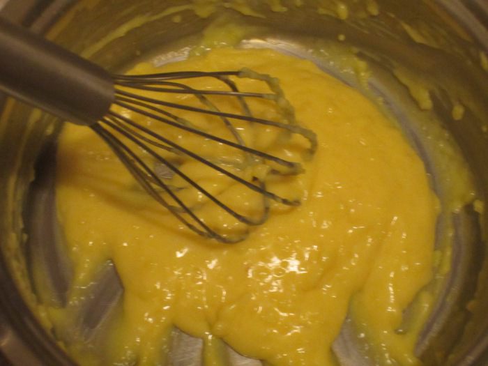 Крем: Взбить желтки с сахаром добела, ввести муку, хорошо перемешать.