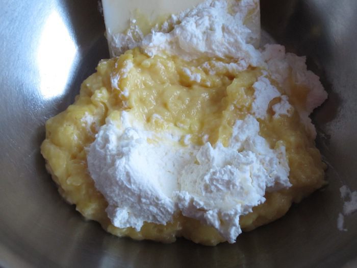 Миксером взбить сливки, добавить в заварной крем и аккуратно перемешать движениями снизу-вверх.
