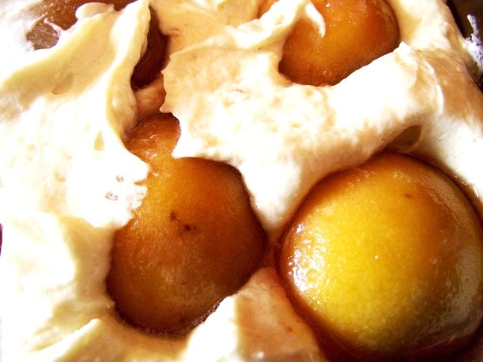 Выпекаем в духовке, предварительно нагретой до 180 градусов, примерно 30-35 минут или до тех пор, пока верх не зарумянится и зубочистка не выйдет сухой из центра. Вынуть из духовки, сбрызнуть оставшимся соком с коньяком, дать постоять в форме минут 10-15.