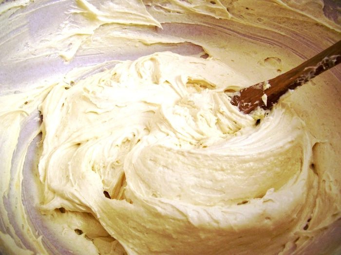 Украсить кекс можно растопленным шоколадом, сливочным кремом или масляным кремом, присыпать хлопьями миндаля, кокоса или сахарной пудрой.