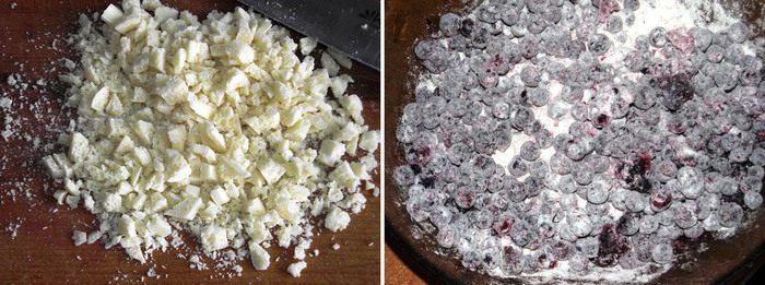 Взбейте яйца с сахаром в пышный крем. Сливочное масло слегка прогреть в микроволновой печи до мягкого состояния. Постепенно добавляем масло по одной ложке к яичной массе и продолжаем взбивать до однородности. Затем вводим небольшими порциями просеянную муку(смешанную с разрыхлителем), постепенно взбивая миксером. Добавить шоколад, половину черники и аккуратно перемешать лопаткой, не повредив ягоды. Остальную часть ягод добавим сверху на тесто.