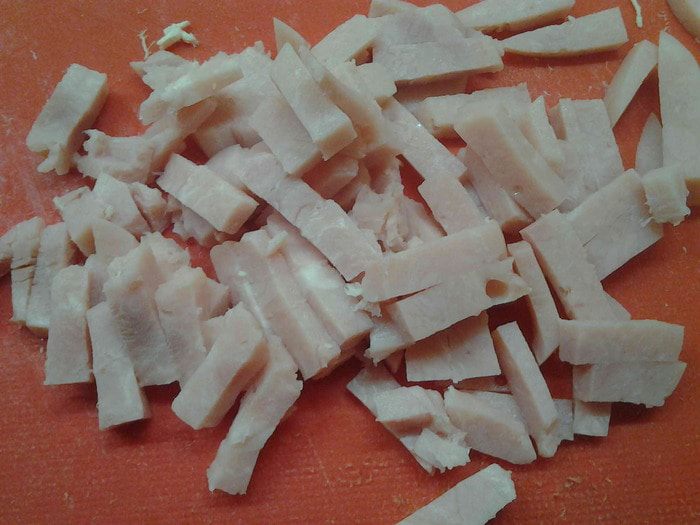 Ветчину нарезать соломкой