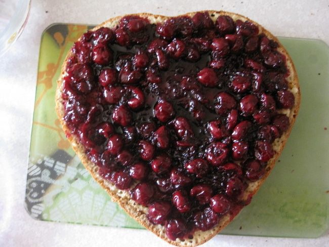 На 2-ой шоколадный корж - ягоды. У меня клубника и вишни, но можно только клубнику (мне ее не хватило).