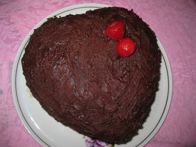 Шоколад, сливки и клубника, которые присутствует в этом десерте, являются афродизиаками (продукты из кулинарной книги Афродиты). Для энергии в любви, она рекомендовала эти продукты. Поэтому для романтичкского ужина, я приготовила такой десерт и сделала в виде сердца. Моим очень понравился тортик и день Влюбленных у нас теперь каждый день.