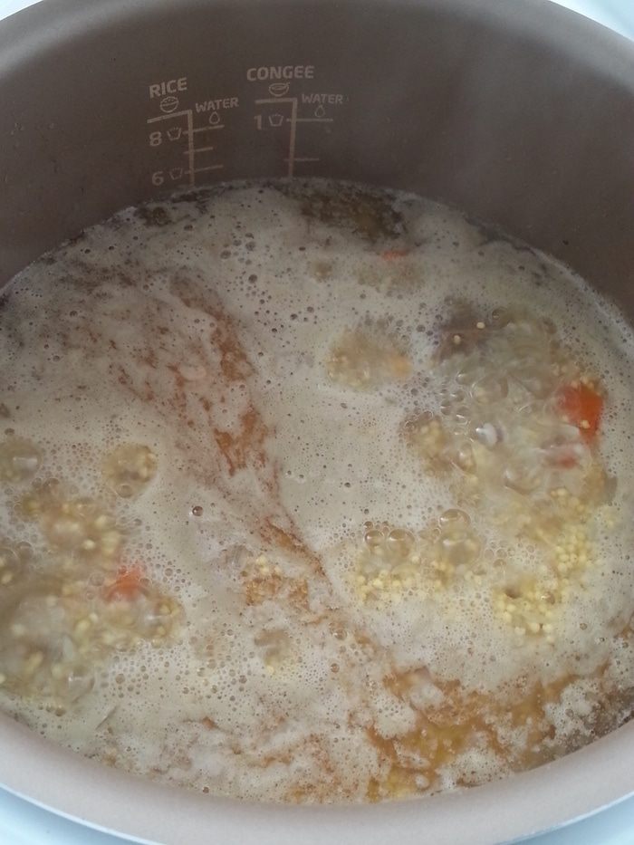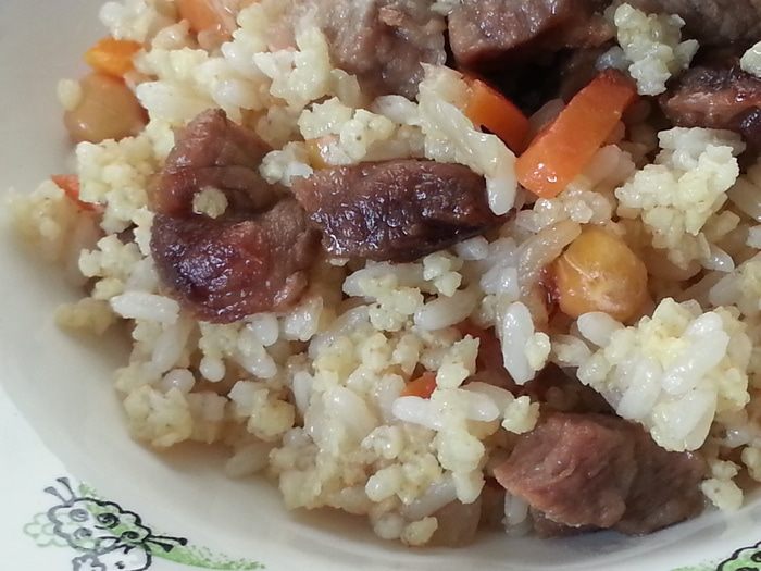Масло используется по минимуму, если использовать меньше - то получится рисово-пшенная каша с мясом и морковью.