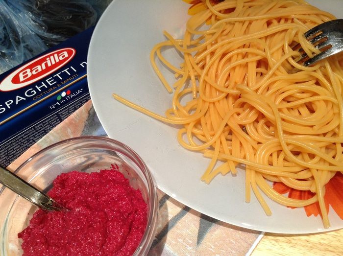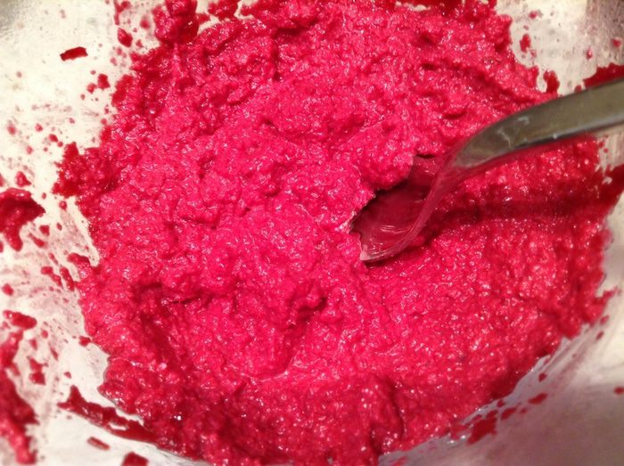 4. Переложить свеклу в бледнею, добавить орехи и сыр.