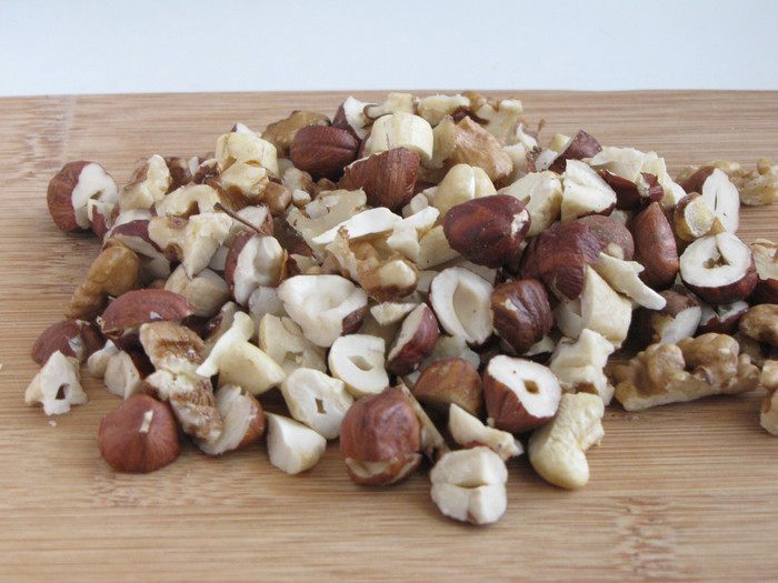 Орехи крупно порубить. Я брала смесь орехов - грецкие, кешью, фундук.