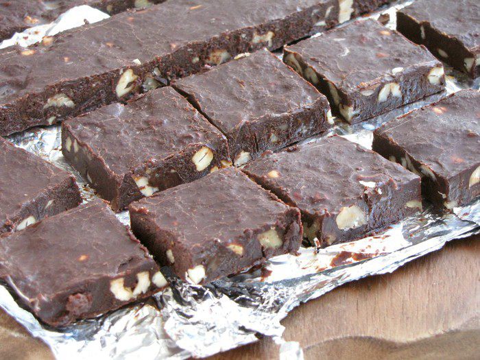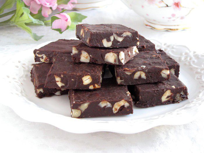 Настоящее лакомство для любителей шоколадно-орехового вкуса! Великолепное сочетание шоколада, сгущеного молока и трех видов орехов! Конфеты довольно мягкие по консистенции, напоминают ирис или тянучку. Хранить их лучше в плотно закрытом контейнере в холодильнике не дольше недели.