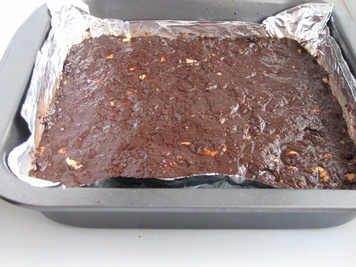 Вылить подготовленную массу в форму, застеленную фольгой. Остудить при комнатной температуре, затем переставить в холодильник до полного затвердевания.