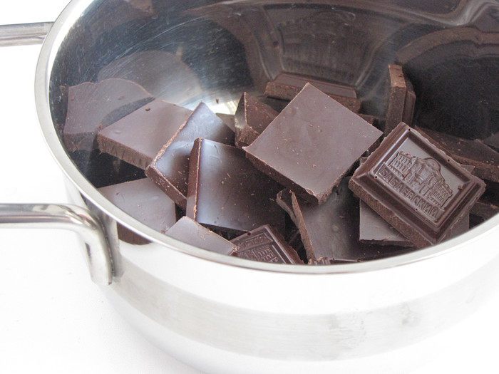 Шоколад поломать на кусочки и положить в маленькую кастрюльку или сотейник.