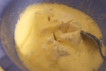 Добавить рикотту, сгущенное молоко. Взбить до устранения комочков.