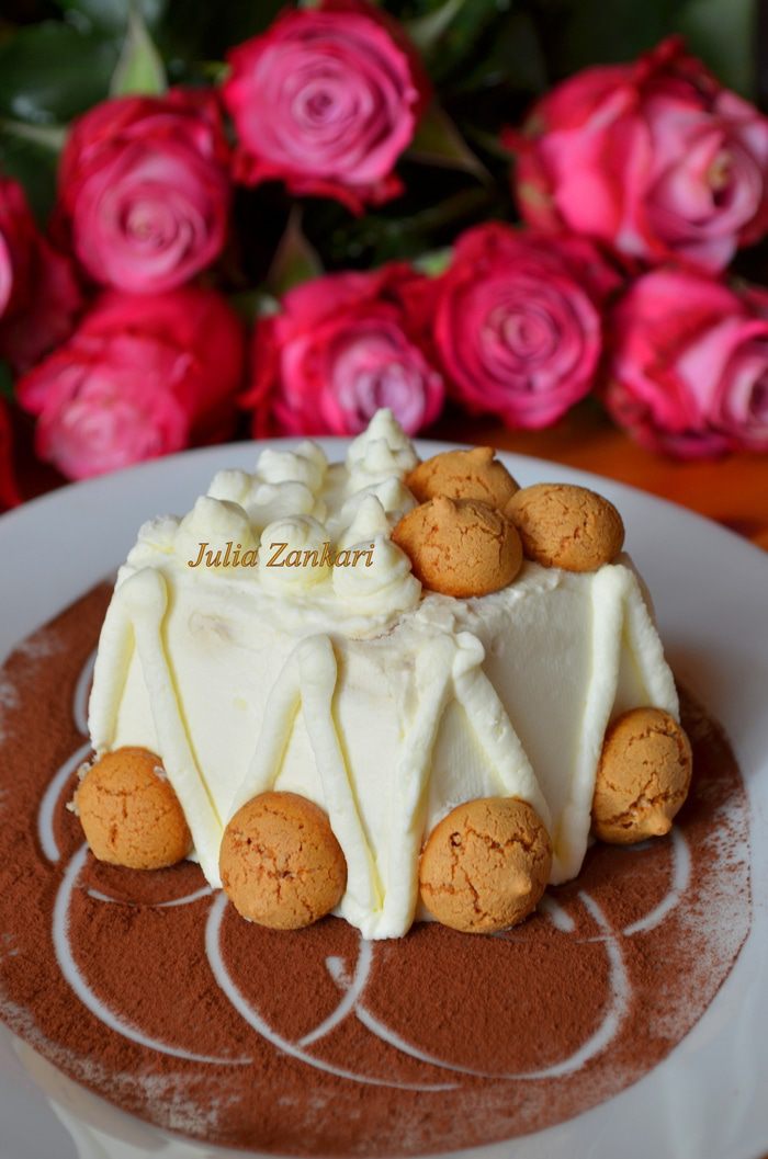 Украшаем также по желанию сверху кремом и миндальным печеньем (советую перед подачей,т.к. печенье напитывает влагу от крема и становится мягким).