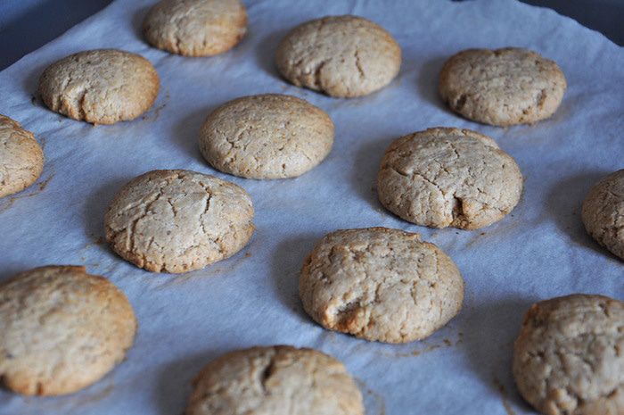 Выпекать на противне, устланном пергаментом, около 30 минут при 180 гр.