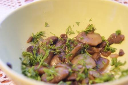 Грибы обжарить в небольшом количестве оливкового масла, добавть зелень.