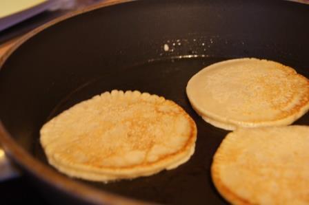 Блинчики выпекать на сковороде, смазанной растительным маслом. На один блинчик по 1-2 ст. ложки теста.