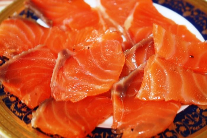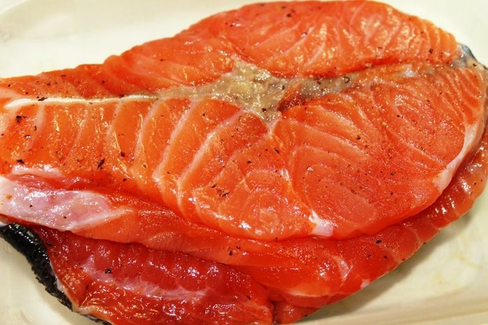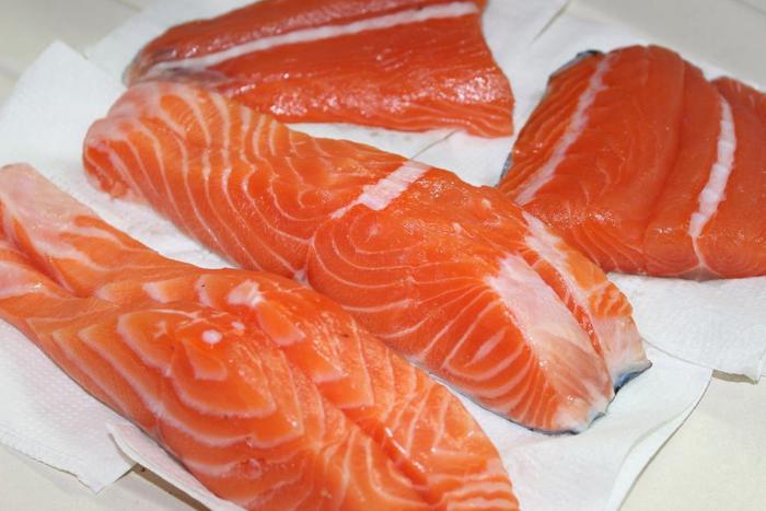 Через один день рыбка готова...при этом выделяется сок, который можно слить. Освободить рыбу от бумаги, хотя можно хранить и в ней. Я постаралась сфотографировать в том же ракурсе, что был до засолки, чтобы можно было сравнить текстуру и цвет рыбы (она остается как свежая).