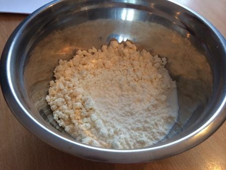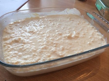 Добавить манку и сахар. Перемешать. Смазать хорошо форму сливочным маслом. Выложить смесь.