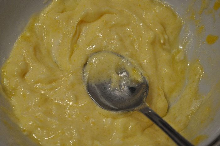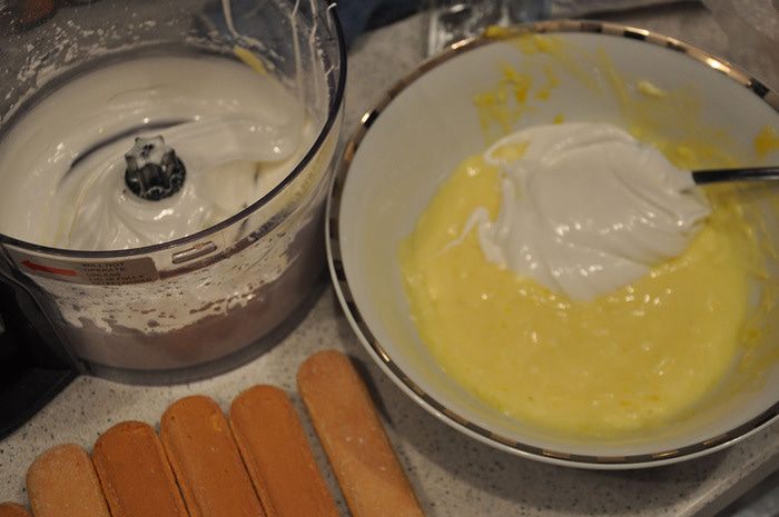 Приготовить крем: разделить желтки от делков. Желтки растереть с сахаром. Добавить сыр и аккуратно перемешать.