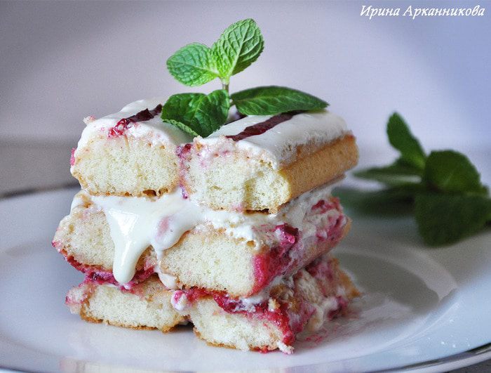 Этот десерт я сделала себе ко дню рождения. Угощаю всех!!! Очень нежное сочетание. Сливки и брусничный соус так похожи на любимое мной в детстве лакомство: мороженое с ягодным сиропом. И мята здесь не только украшение, но и пикантный оттенок к остальным вкусам. К сожалению, меня дети отвлекли,не успела поставить готовый крем в холод, и он немного успел потерять свою пышность, хоть и застыл потом в холодильнике замечательно!!!