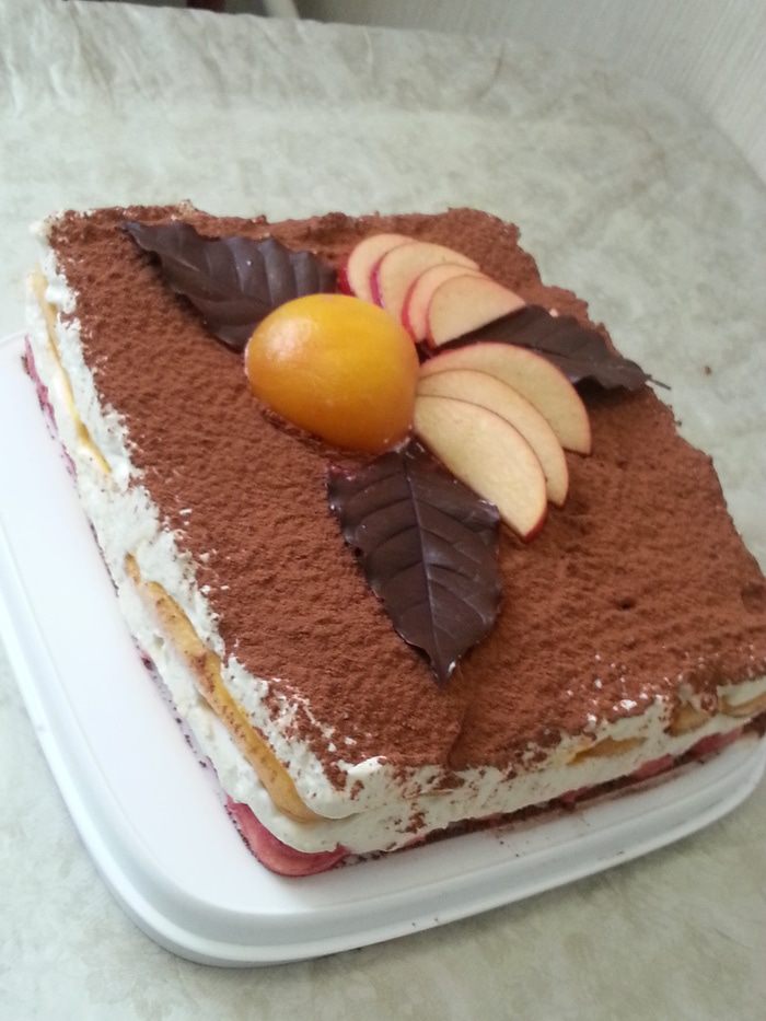 Что можно добавить в тирамису, когда ты живешь в небольшом сибирском городке? Только фрукты - по сезону, консервированные или собственноручно замороженные. Причем в выборе фруктов очень ограничивает старший сын, который вообще не есть цитрусовые, киви, манго и виноград. Приходится выкручиваться.
