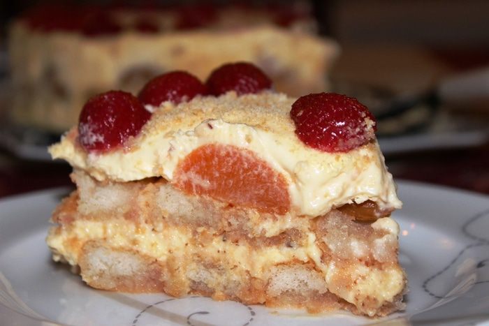 Когда торт хорошо охладится, крем загустеет можно снять бортики формы. Торт хорошо держит форму.