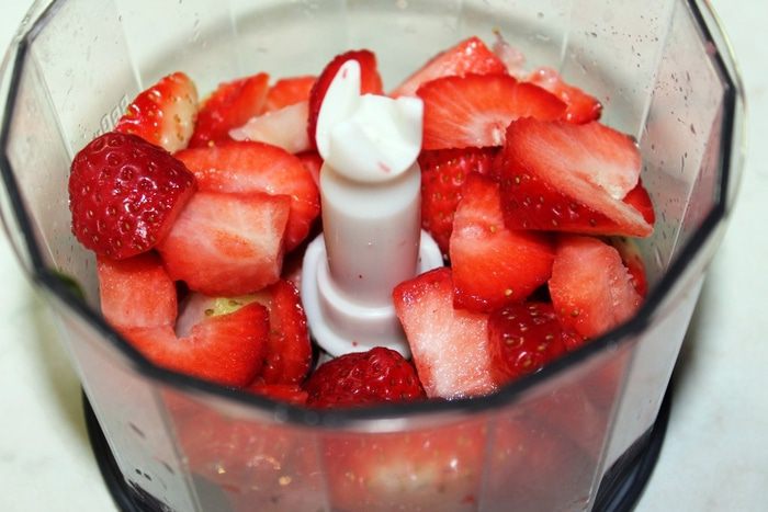 Клубнику измельчить в блендере в пюре.
