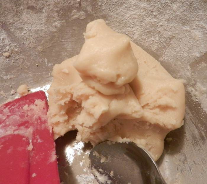 Выкладывать на смазанный маслом лист, придавливая пальцем посередине для получения углубления. Заготовки получатся размером около 5 см. Выпекать в заранее разогретой духовке в течение 5 минут при темп. 160 С. Вынуть из духовки и придавить пальцем посредине ямки снова. Отправить в духовку снова на 10-15 минут, пока заготовки для печенья не станут золотистого цвета. Вынуть, оставить на листе на 5 минут.
