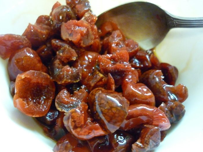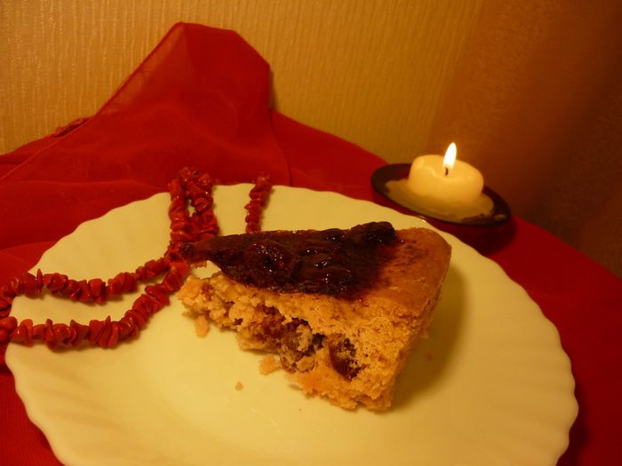 55 граммов сухого киселя...странно. Да ничего странного. 55 граммов - это четверть пачки. Поэтому стандартный брикет весом 220 гр режем на 4 части. Вот 55 граммов. Брикет, не пачка-конвертик. Там очень химический вкус и цвет. А вот брикет - это вещь. В детстве кисель на вес продавали. В магазине огромный куб сухого киселя стоял, продавец огромным ножом отколупывала кусок. дети грызли прямо в магазине. И мне так хотелось. Но бабуля четко резюмировала: ТЫ ТАК ЕСТЬ НЕ БУДЕШЬ. Потом я как-то попробовала....Бабушка права.Так вот, прежде чем купить брикетик, надавите на него. Если есть ощущение мягкости, немного сыпучести - берем. А если брикет крепок, как кирпич, то пусть и дальше лежит в магазине и ждет своих строителей. Сухой кисель содержит сахар, крахмал, немного красителя и вишеневый ароматизатор.4 в одном. Итак, у нас первой была вишня вяленая, второй - вишневый кисель. Третья - потерпите немного. Кисель в тесте придаст рыхлость, в начинке - плотность и форму. А еще цвет, вкус и аромат.