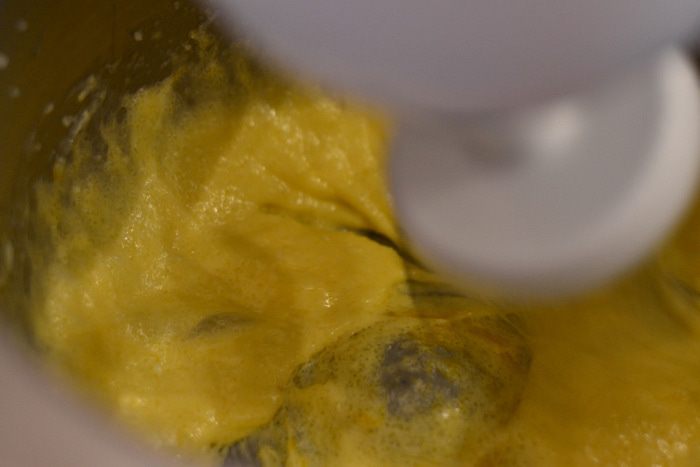 Рецепт рассчитан на форму, диаметром 16 см. Включить духовку на температуру 180 градусов. Влить в чашу растительное масло, добавить сливочное масло комнатной температуры и взбить с сахаром.