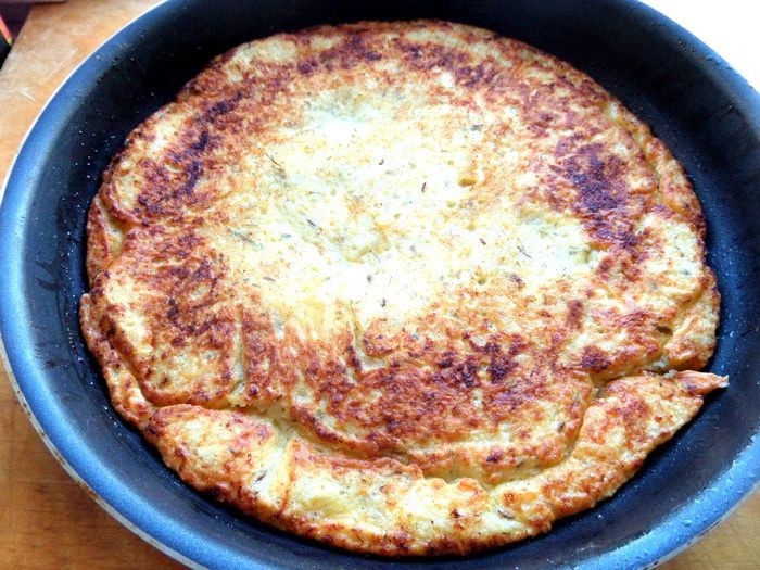 Аккуратно переворачиваем и жарим с другой стороны...Моя лепешка довольно тонкая, поэтому я не накрывала ее крышкой, она и так прожарилась!