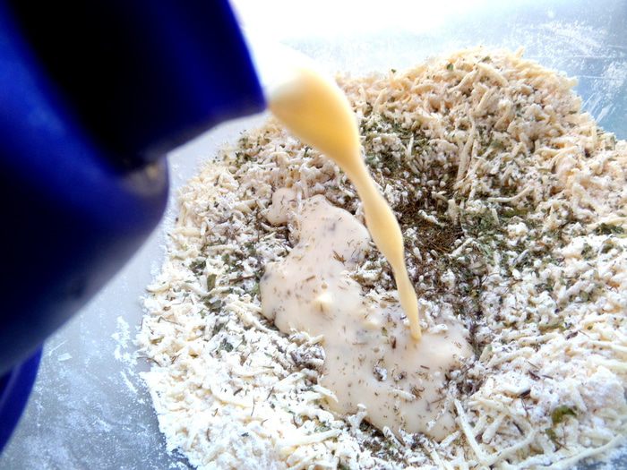 Тесто можно сделать заранее, а можно сразу приступать к выпеканию -обжариванию.