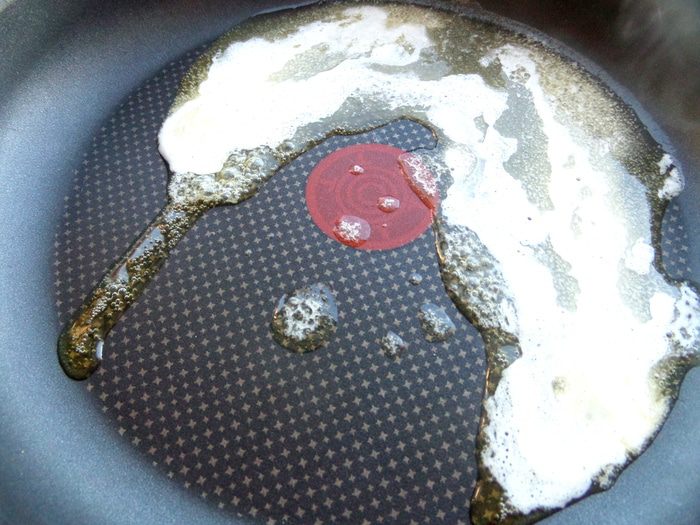 Для этого непригораемую сковороду ( моя 26 см в диаметре) нагреть и растопить в ней сливочное масло.