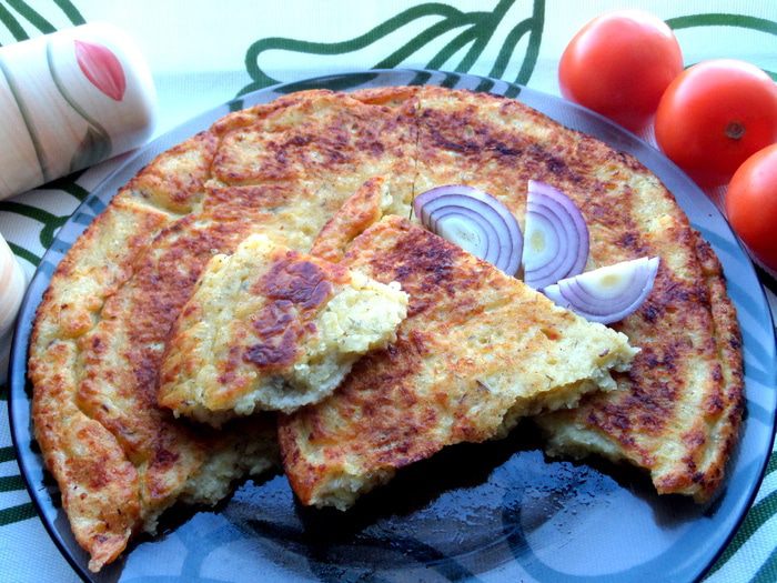Не успели купить хлеба...или нужен быстрый горячий завтрак? Тогда Вас выручит вот такая лепёшка с сыром и ароматными добавками! Готовила к ужину...,а когда поздно вечером зашла на кухню - на столе стояла пустая тарелка (как хорошо,что я успела распробовать кусочек с пылу с жару!)...