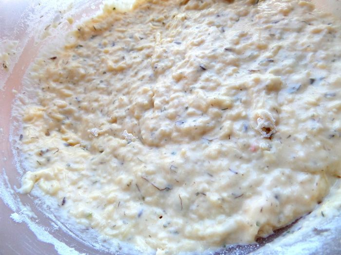 Перемешиваем и смотрим, нужна ли еще мука,чтобы получилось тесто как на оладьи.