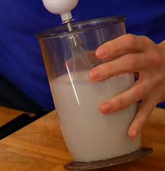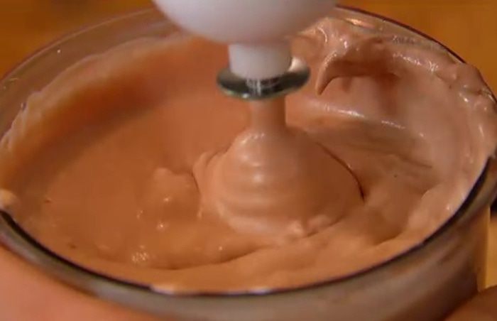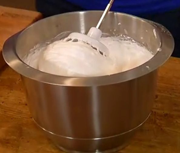 Оставшиеся сливки взбить миксером в пышную массу на высокой скорости.