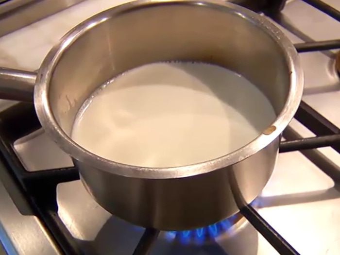 Налить 250 мл сливок в небольшую кастрюлю и довести до кипения.