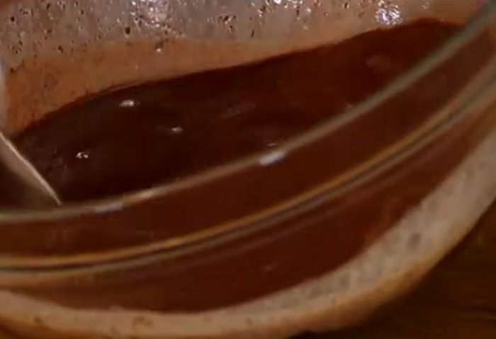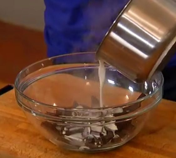 Шоколад поломать небольшими кусочками и залить горячими сливками. Оставить на 5 минут, не перемешивая.