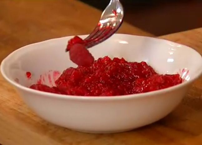 Половину малины добавить во взбитые белки, перемешать и поместить массу в кондитерский мешок.