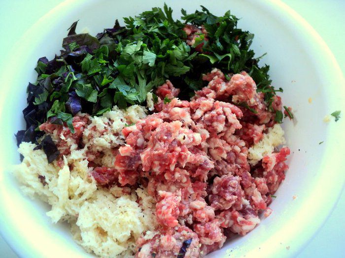 Хорошенько вымешать фарш.