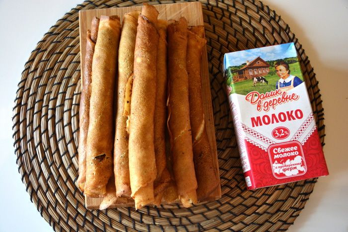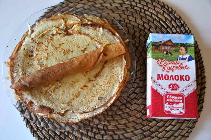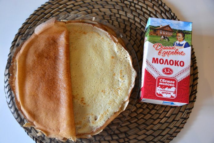 Для красоты разрезать блинчики пополам.