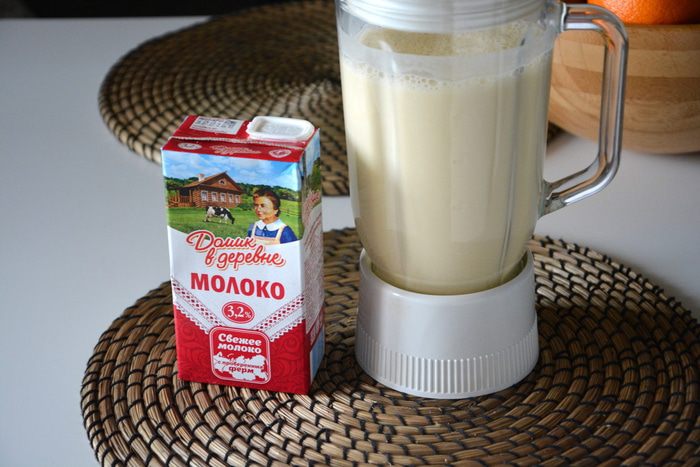 Добавить молоко «Домик в деревне», растительное масло, просеянную муку с солью, ванилин. Взбить все в блендере или перемешать и процедить через сито, чтобы не было комочков.
