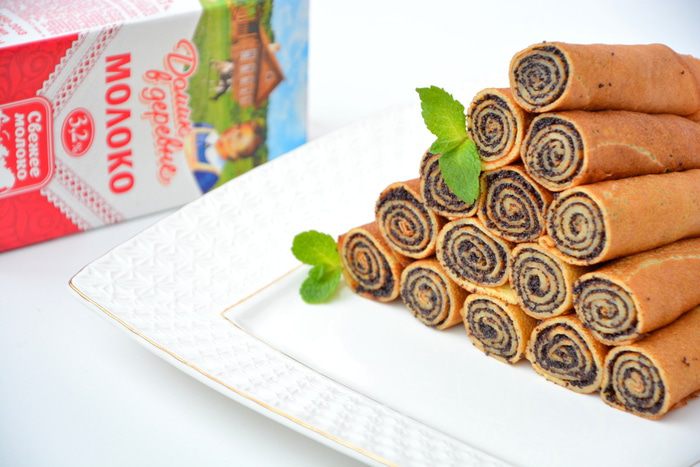 Блины получаются тоненькими, эластичными и не очень пористыми, чтобы начинка не просачивалась. Это маковое лакомство очень любят дети.