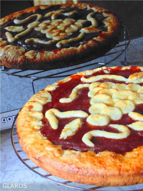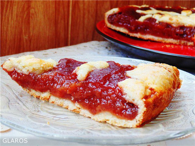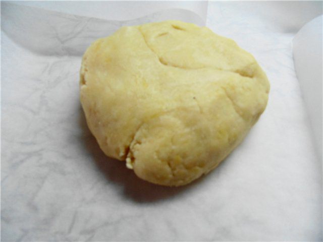 Песочное тесто: Просеянную муку смешать с сахарной пудрой (в оригинале 125 г, на мой взгляд достаточно 80 г) и солью. Добавить очень холодное масло, нарезанное кубиками и порубить в крошку. В мучную крошку добавить желток и воду. Быстро замесить тесто, которое скатать в шар, завернуть в пленку и поместить в холодильник на час.