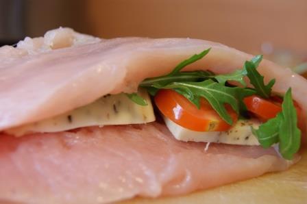 Куриная грудка фаршированная руколой, черри и моцареллой