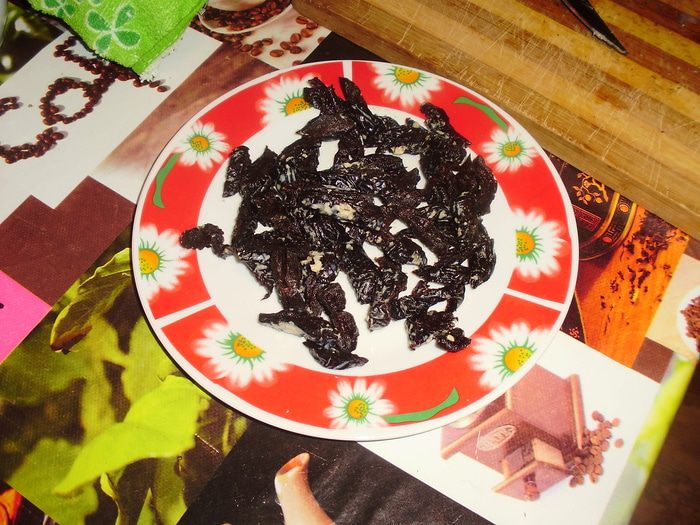 Чернослив порезать соломкой.