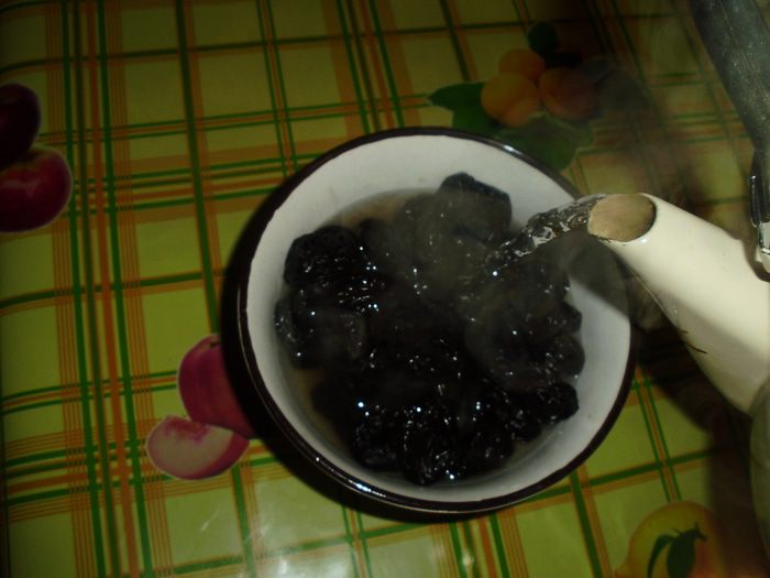 Чернослив залить кипятком на час.