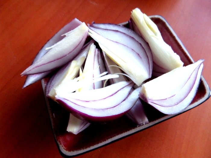 Луковицу нарезать на дольки...