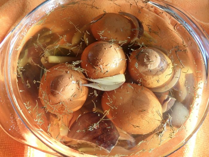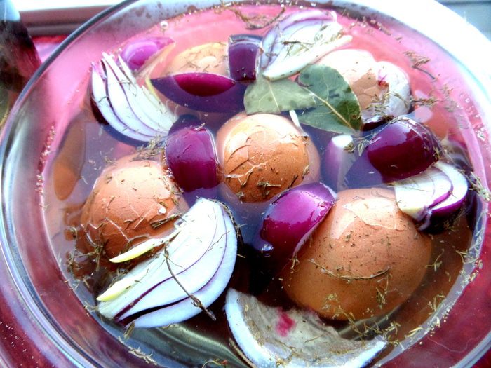 Вот я и добралась до маринования яиц))) Первый раз было немного загадочно ждать результат,но всё прошло отлично! Яйца не поменяли свой цвет,а вкус только усилился благодаря соли и приправам...
