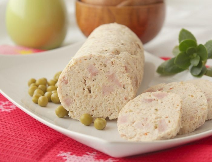Готовый галантин достаем из кастрюли, охлаждаем, ставим в холодильник. Через час достаем из холодильника, разрезаем на порции и подаем.